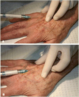 dans les espaces intertendineux sous cutanés à l'aide de fines aiguilles et va ensuite masser le produit afin d'obtenir le résultat homogène.